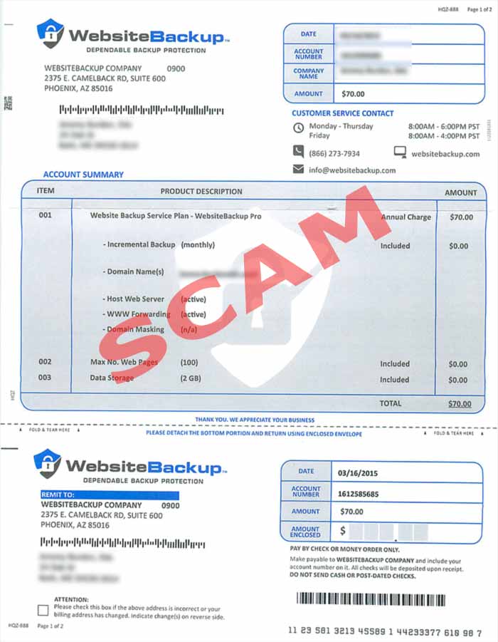 We just want everyone to be aware of the following scam.. This invoice is a Website Backup Scam! We do not outsource any backups here at MHS. Nor do most other hosting providers.